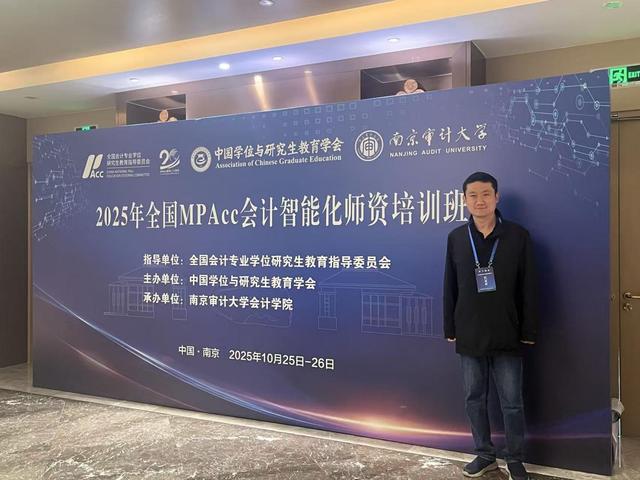 近日,由全国会计专业学位研究生教育指导委员会指导、中国学位与研究生教育学会主办、南京审计大学会计学院承办的“2025年全国MPAcc会计智能化师资培训班”成功举办。我院曹记峰副教授参加了此次行业高水平培训,与来自全国的MPAcc教育领域专家学者共探会计智能化教学改革新路径。