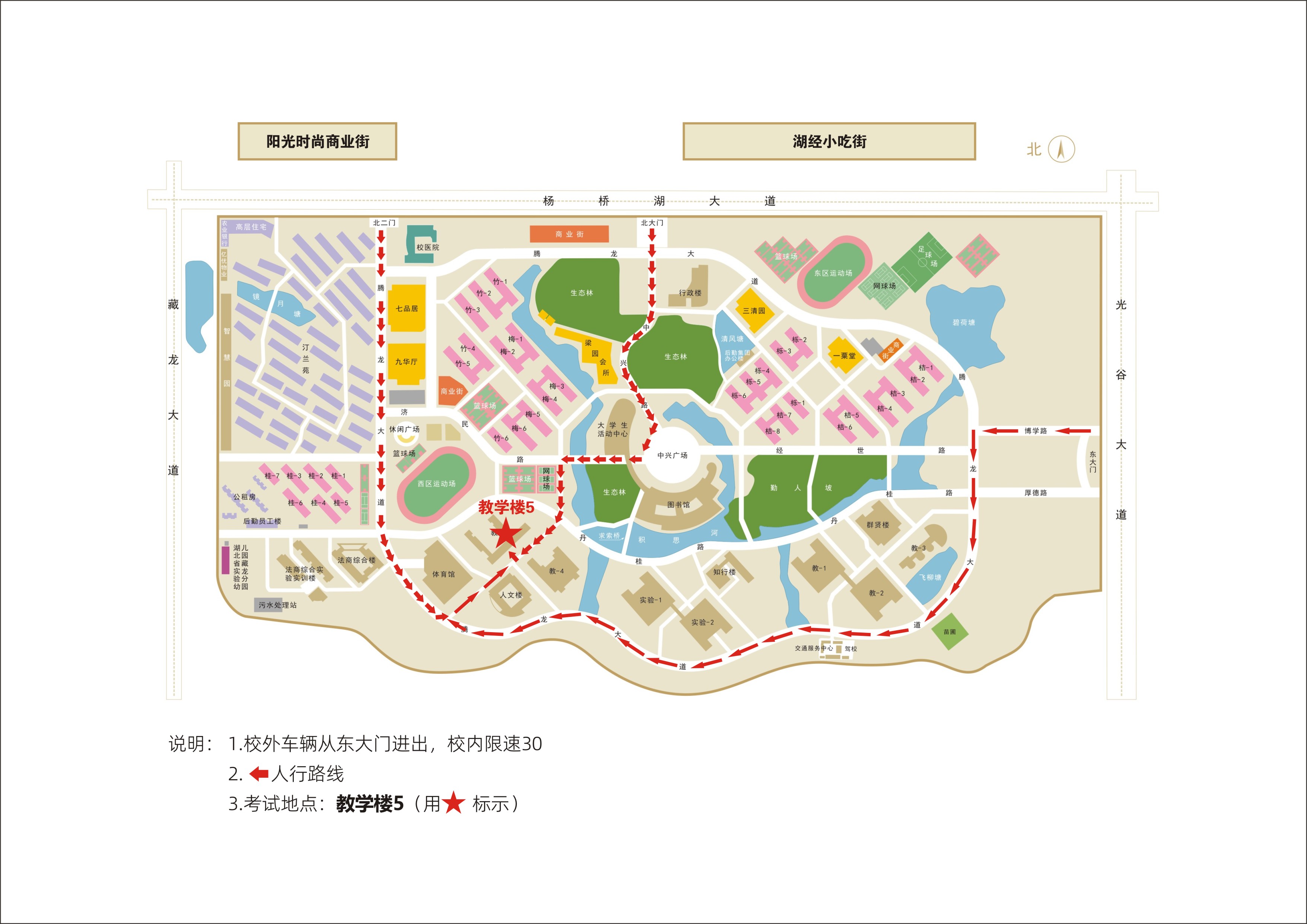 考生可从我校东大门、北大门、北二门凭身份证、初试准考证进入校园,根据校园导航图(附件2)前往复试地点。